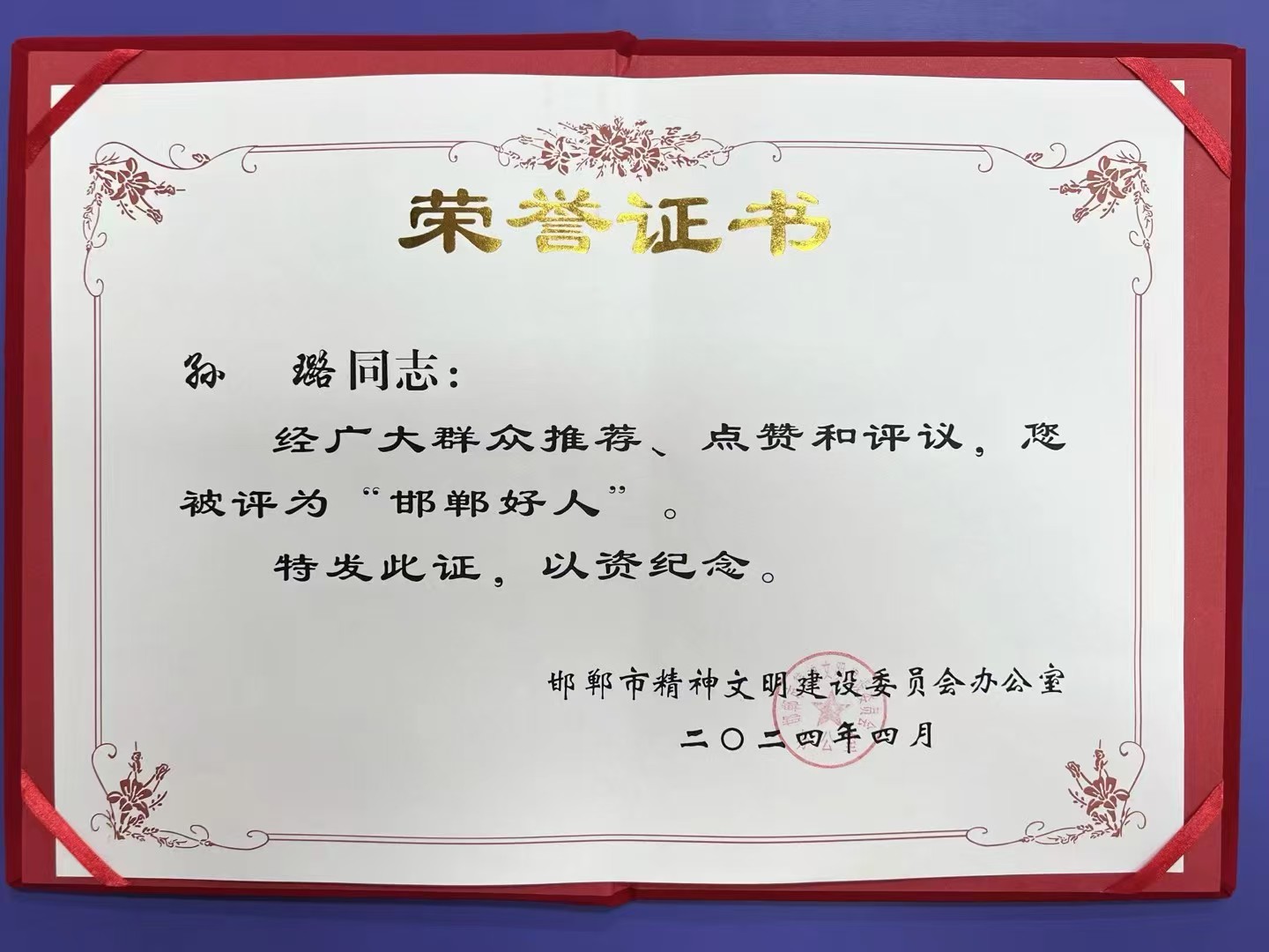 在武安市上团城镇崇义村,有一个叫孙璐的年轻人,为回馈社会,走上公益之路,用实际行动帮助他人,传递社会关爱。他用小义举温暖着众多群体,2024年被邯郸市文明办评为“邯郸好人”。